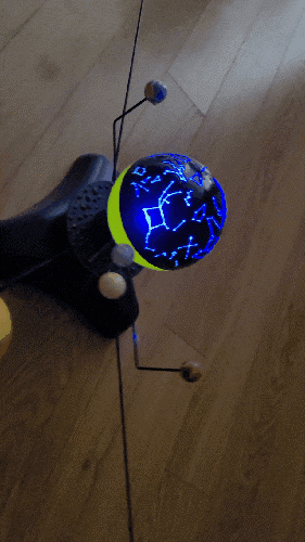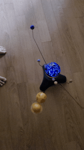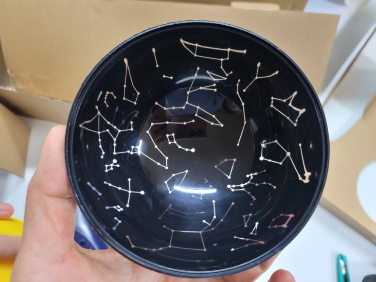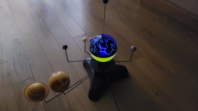 윗부분 뚜껑이 두개에요. 하나는 별자리 모양이 있고 하나는 노란색으로 태양을 나타내는 것이 있습니다. 두 개를 바꿔서 조작하시면 됩니다.