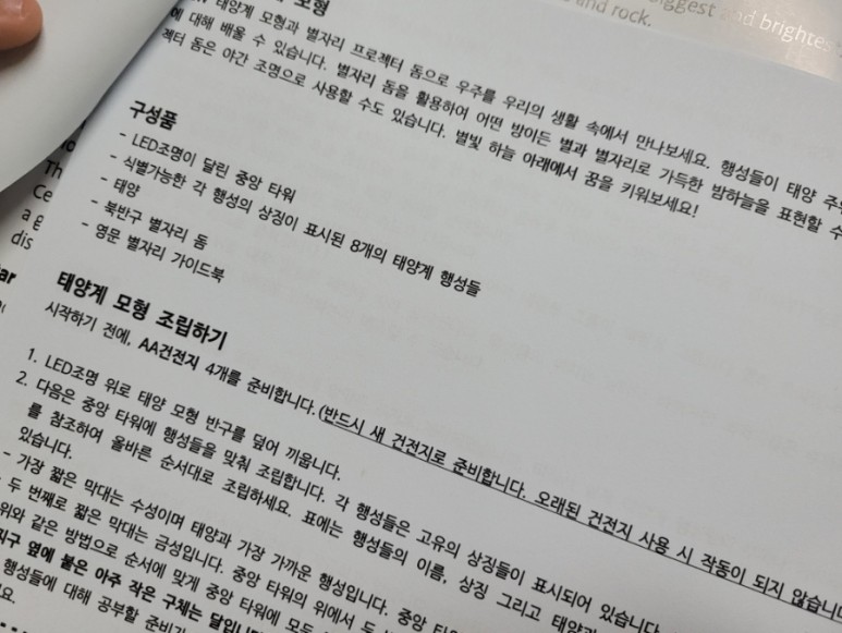 아이들만의 방식 영어 설명서는 별자리나 행성에 대해 나와 있습니다.아이가 조립하는것을 읽기가 귀찮다고^^;;;;;;;;;;;;;;;;;;;;