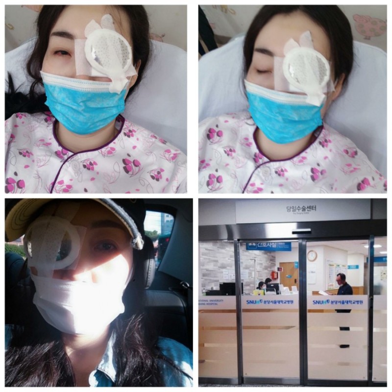 급성 녹내장 수술 2명의 아이를 출산하면서 전신 마취와 척추 마취를 둘 다 해봤는데 눈은… 흐흐흐 환자가 정신이 있어야 수술이 가능성이 없다 그래서 수면 마취가 듣지 않는다 즉 정신이 있는 상태에서 모든 수술 과정을 느끼는 것이다얼마나 잔인한 현실인지…. 눈을 도구로 고정시키고 베타딘을 눈에 뿌리는 통째로 뿌린 뒤 거즈에 베타진을 묻혀 눈알을 닦아내는 마취를 했다.하지만 베타진을 틀 때부터 시린 통증이 느껴졌다.나중에 마취 여부를 확인하고 수술을 했다 그리고 분위기가 있다는 것 자체가 두려웠다.정말 힘든 순간이었다.다행히 담당의사선생님이 수술을 잘해주셔서 왼쪽 눈 수술 후 3일 후에 오른쪽 눈도 수술을 했다.오른쪽 눈 수술이 싫어도 안압이 높아서 빽빽했어(´;ω;`)