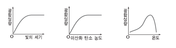광합성에 영향을 미치는 환경요인: 빛의 강도, 이산화탄소의 농도, 온도