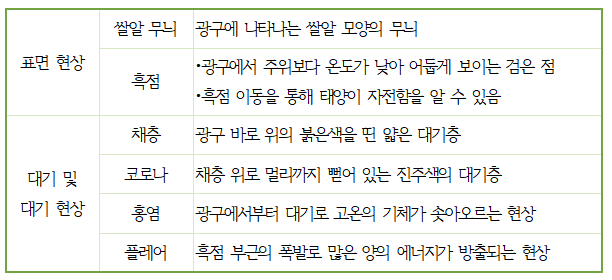 2. 태양: 태양계에서 유일하게 스스로 빛을 발하는 천체(1) 태양의 표면과 대기에 나타나는 현상