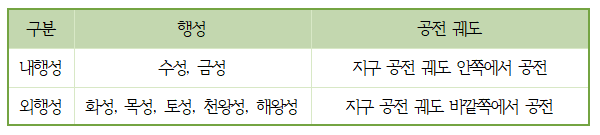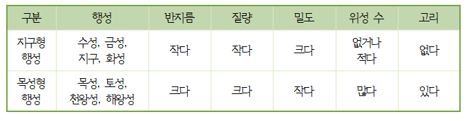 ② 지구형 행성과 목성형 행성: 행성의 물리적 특성에 따라 구분
