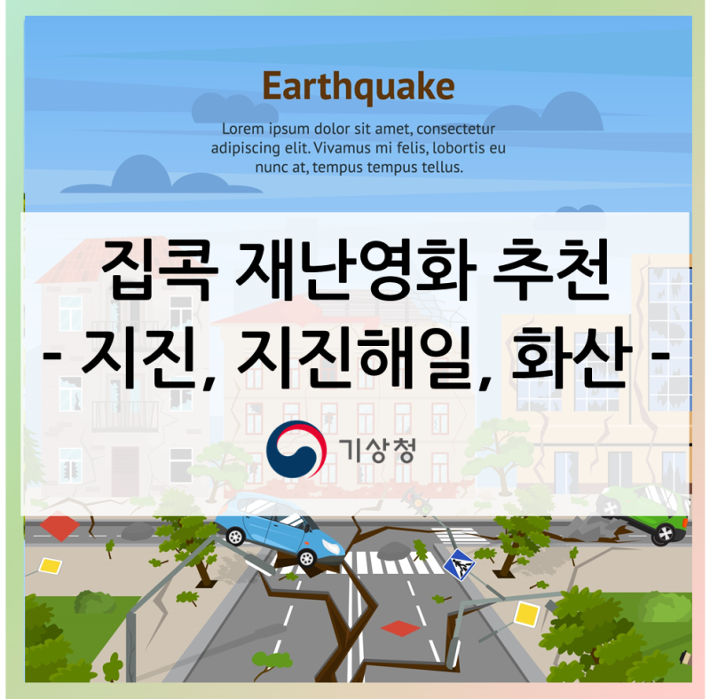 출처=기상청의 대규모 지진이나 쓰나미, 화산 폭발은 우리 주변에서 쉽게 경험할 수 없는 자연재해입니다! 그래서 나와는 먼 이야기라고 생각될 수 있지만, 한번 발생하면 초대형 재난으로 이어질 수 있으므로 미리 대비하는 것이 필요합니다. 실제로 본 적도 경험해 본 적도 없는 재난에 어떻게 대비해야 할지..? 야외나 체험활동이 어려운 요즘. 집에서 영화를 통해 간접 경험을 해보는 건 어때요? 리얼한 자연재해 관련 영화 3편을 시간이 금방! 집콕 영화로 소개합니다 😀