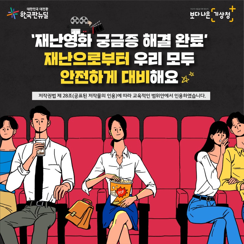 출처=기상청의 대규모 지진이나 쓰나미, 화산 폭발은 우리 주변에서 쉽게 경험할 수 없는 자연재해입니다! 그래서 나와는 먼 이야기라고 생각될 수 있지만, 한번 발생하면 초대형 재난으로 이어질 수 있으므로 미리 대비하는 것이 필요합니다. 실제로 본 적도 경험해 본 적도 없는 재난에 어떻게 대비해야 할지..? 야외나 체험활동이 어려운 요즘. 집에서 영화를 통해 간접 경험을 해보는 건 어때요? 리얼한 자연재해 관련 영화 3편을 시간이 금방! 집콕 영화로 소개합니다 😀