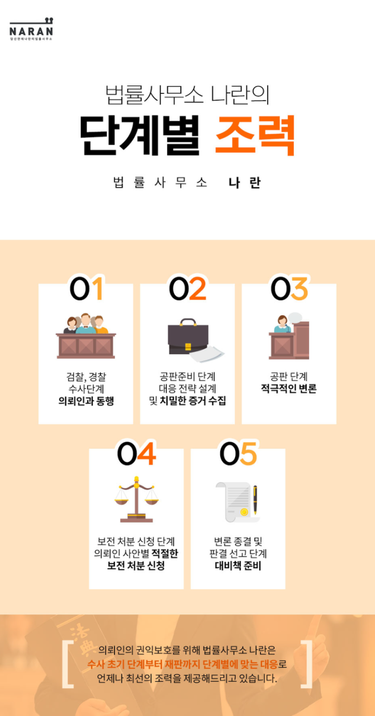 사무장을 거치지 않고 1:1 상담을 통해 의뢰인의 신변을 보호하기 위해 노력하고 다양한 판례 사례에 대한 경험에서 다양한 방면에서 예측할 수 있는 변수에 대비해 보다 현실적인 대책을 의뢰인에게 제시할 수 있습니다.