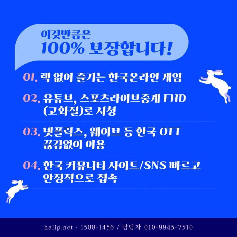 다만 업체마다 제공하는 서비스가 달라 무료 VPN 업체도 많은데 그 중에서도 속도나 품질이 보장되는 VPN 서비스를 이용해야 합니다. 무료 VPN 업체의 경우 속도가 느린 것은 물론 개인정보 유출 위험도 존재합니다.하이온차이나VPN은 국제전용회선 직결망으로 서비스를 제공하고 있습니다. 기업이 사용하는 프리미엄급 전용회선과 같은 회선이라고 생각하시면 됩니다. 일반 공중망 인터넷을 사용하여 끊김, 접속 장애 현상이 빈번한 타사 회선과 차별점이 있습니다.특히 중국의 경우 인터넷 검열이 심해서 유료 VPN에서도 서비스가 차단되는 업체가 많다고 합니다. 이러한 경우 사용자는 비용을 지불하더라도 서버가 복구될 때까지 서비스를 이용할 수 없는 경우가 종종 있습니다. 하이온차이나는 중국 대표 유선사업자인 CN2, CU와 협업해 국제전용회선으로 연결해 차단에 대한 걱정이 없습니다.중국에서 한국 넷플릭스나 유튜브 등 HD급 이상 고화질로 영상 콘텐츠를 이용하거나 한국 온라인 게임을 즐기고 있는 분이라면 하이온차이나를 추천할 수밖에 없습니다.또한 중국-한국 국가간 최단구간(다이렉트)으로 연결되어 365일 언제든지 양호한 속도와 인터넷 품질을 보장하고 있습니다. 특히 핑그로스 없이 해외에서 한국 게임이나 OTT 서비스에 접속해 플레이하거나 콘텐츠를 감상하는 데 도움이 됩니다.아래에 해당하는 분들께 저는 하이온차이나를 추천하고 싶습니다. 한국넷플릭스, 게임, 유튜브, 구글, 카카오톡, 기타 SNS 등 모든 한국 콘텐츠와 차단된 사이트를 이용하고 싶으신 분아래에 해당하는 분들께 저는 하이온차이나를 추천하고 싶습니다. 한국넷플릭스, 게임, 유튜브, 구글, 카카오톡, 기타 SNS 등 모든 한국 콘텐츠와 차단된 사이트를 이용하고 싶으신 분위에서도 언급했지만 영상의 경우 HD 고화질로 시청할 수 있고 문제 발생 시 24시간 온라인 문의가 가능합니다. 해외에서 사용하고 있는 서비스인데 속도나 문제가 생겼을 때 대처하는 것이 좋다고 느낍니다.현재 하이온차이나에서 2023년 1월 31일까지 행사를 진행하고 있습니다. SNS 인증을 하면 15일 추가, 그리고 친구나 지인을 추천하면 10일 무료 체험이 가능한데 자세한 내용은 아래와 같습니다. SNS인증 이벤트 이미지 캡처 –> 해시태그(#한국vpn #해외vpn #vpn추천 #하이IP) 추가 –>현재 활동하고 있는 본인 계정의 SNS나 블로그, 카페 등에 업로드 –>업로드한 내용을 카카오톡[@하이IP]에 URL로 인증친구소개 이벤트 기간 내 신규등록한 지인ID, 본인ID 카카오톡 [@하이아이피]로 전송중국 VPN, 차단없이 빠르게 – 하이온차이나 | 하이온넷㈜ 속도 5M/2M을 보장하는 국내 유일의 중국-한국 간 프리미엄급 중국 VPN 서비스 하이온차이나에서 한국 유튜브를 즐긴다!www.haiip.net중국에 장기간 여행을 가거나 유학 또는 거주하는 한국 분이라면 하이온차이나를 통해 안정적으로 내가 원하는 한국 콘텐츠를 보거나 게임을 플레이하는 것을 추천합니다. 또한 간단한 이벤트 참여로 ‘최대 25일까지 무료 서비스’를 받기를 바라며, 자세한 내용은 위 링크에서 확인하실 수 있습니다.중국에 장기간 여행을 가거나 유학 또는 거주하는 한국 분이라면 하이온차이나를 통해 안정적으로 내가 원하는 한국 콘텐츠를 보거나 게임을 플레이하는 것을 추천합니다. 또한 간단한 이벤트 참여로 ‘최대 25일까지 무료 서비스’를 받기를 바라며, 자세한 내용은 위 링크에서 확인하실 수 있습니다.