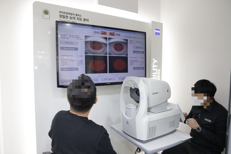 매장 내에는 시력 측정을 위한 공간이 있지만, 정말 일반 안과보다 첨단 장비가 많은 것 같습니다. 유명한 검안 기계 브랜드의 자이스로 측정하는데, 보다 자세하게 정밀해지는 것 같아 대만족했습니다.