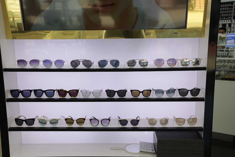 매장에 들어서니 밖에서 보던 것보다 훨씬 규모가 컸고 안경테와 선글라스, 렌즈까지 다양한 종류로 많이 구비되어 있었습니다. 담당하는 전문 직원도 많았습니다.