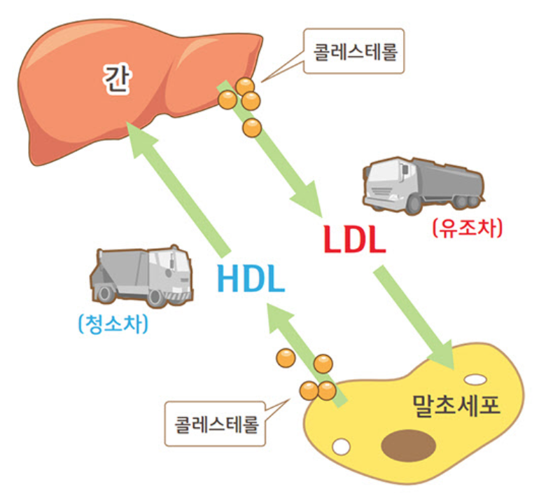 콜레스테롤 LDL, HDL은 콜레스테롤을 운반하는 지단백, 일종의 운송수단이다.