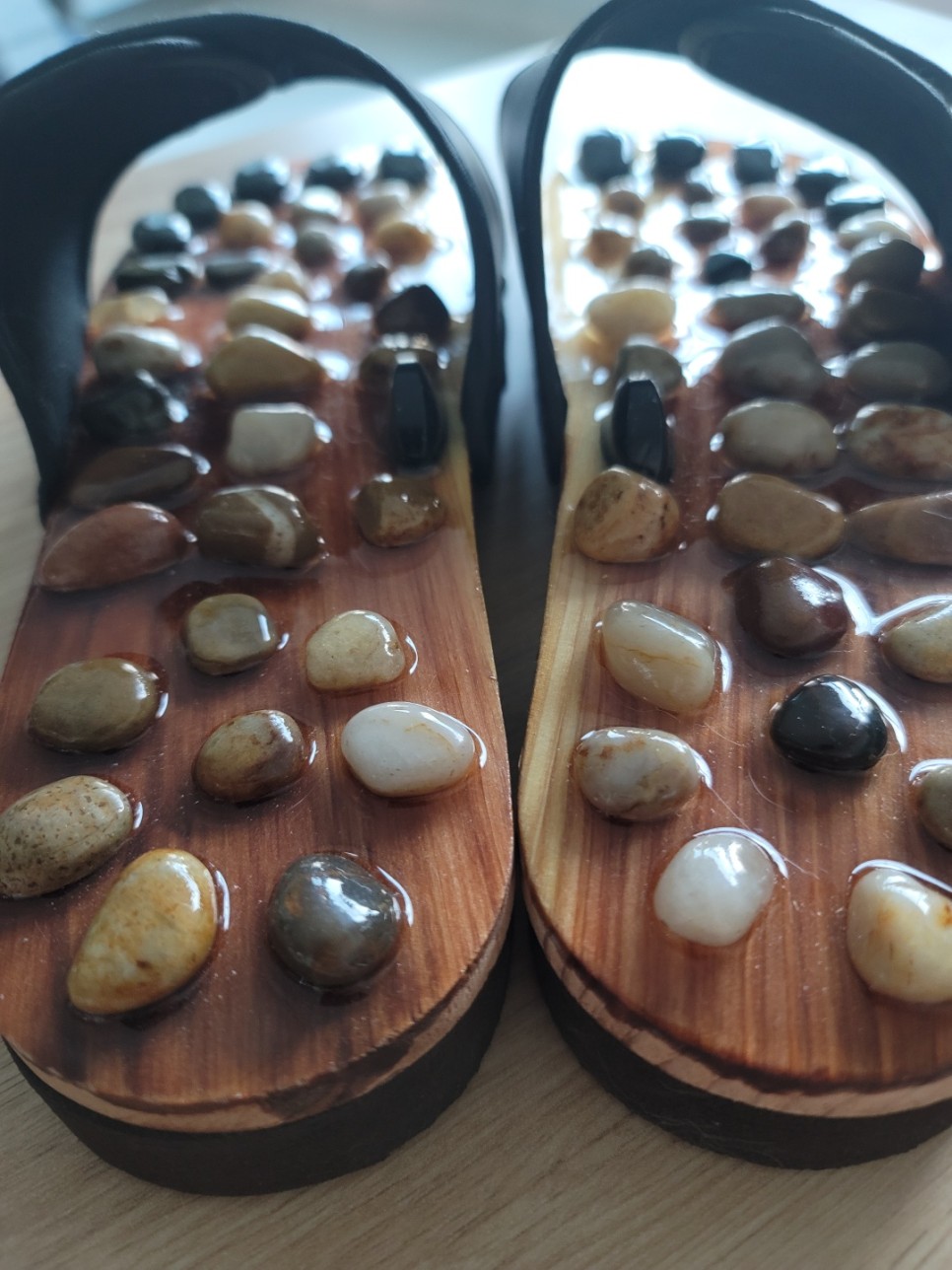 맨발로 자갈밭을 걷는 것 같은 효과가 있어서 역시 발바닥이 아팠습니다.신고 나서 쪼르륵쪼르륵 울면서 아~ 소리가 절로. 그런데 계속 신다 보니까 신는 시간이 조금씩 늘어났어요.