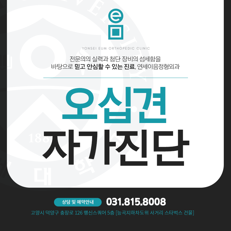 어깨 통증을 유발하는 질환은 오십견 외에도 다양하므로 스스로 진단하는 것은 옳지 않습니다.