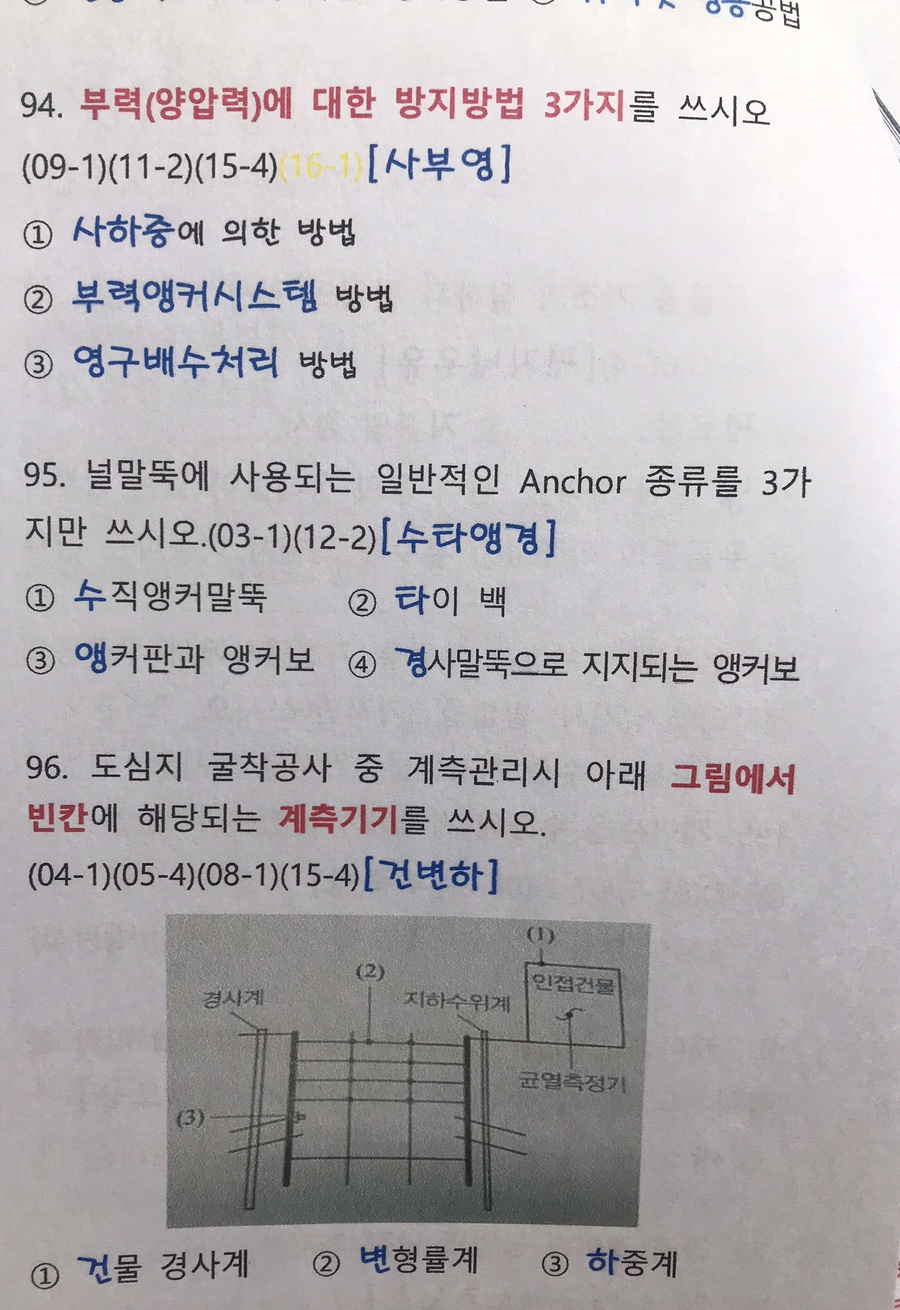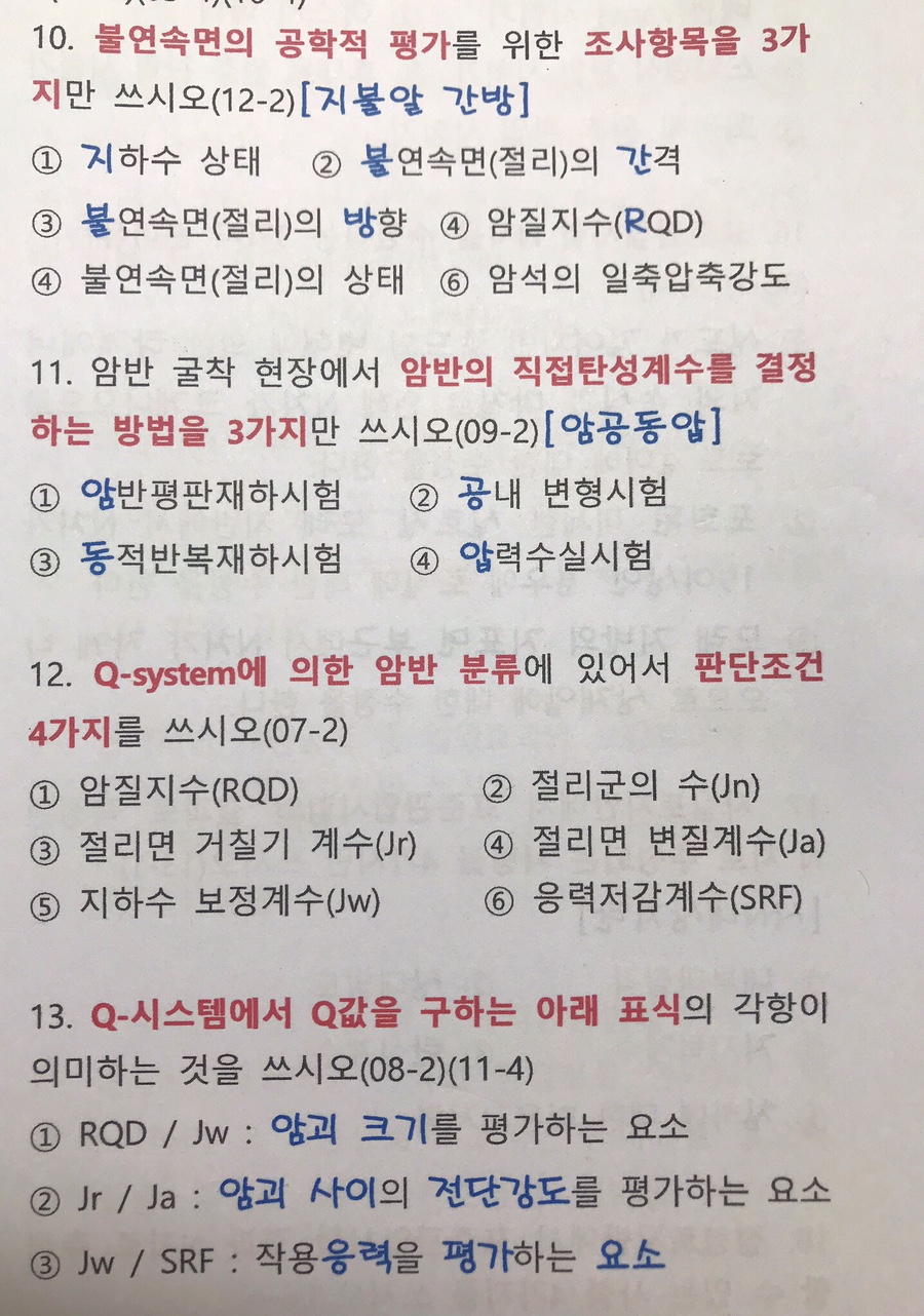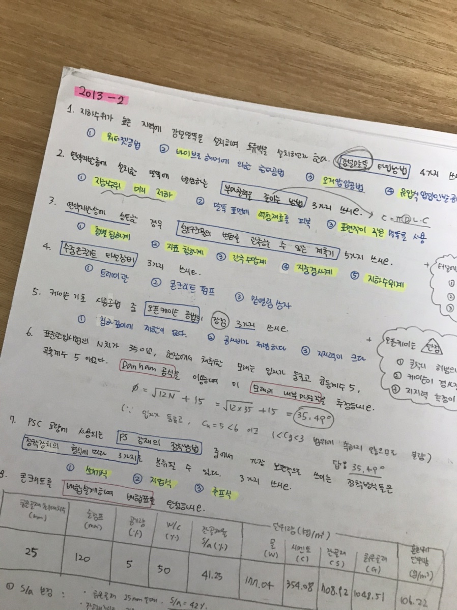 사실 실기는 필기시험을 준비할 때 토질역학과목을 잘 준비하고 있으면 좀 더 쉽게 학습할 수 있을 것 같습니다. 실기에서 나오는 계산문제는 필기로 받은 토질역학이론과 계산부분을 그대로 이어가는 느낌입니다.