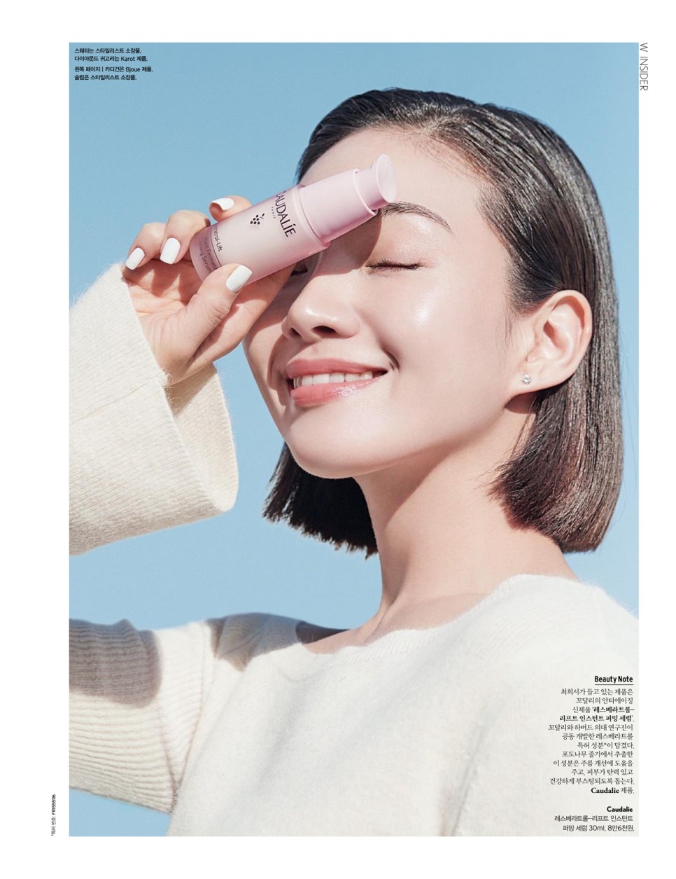 최희서 Beauty Note가 갖고 있는 제품은 코더리의 안티에이징 신제품 ‘레스베라트롤 리프트 인스턴트 퍼밍 세럼’. 코더리와 하버드 의대 연구진이 공동 개발한 레스베라트롤 특허 성분*이 포함됐다. 포도나무 줄기에서 추출한 이 성분은 주름 개선에 도움을 주고 피부가 탄력적이고 건강하게 부스팅되도록 돕는다. Caudalie 제품.