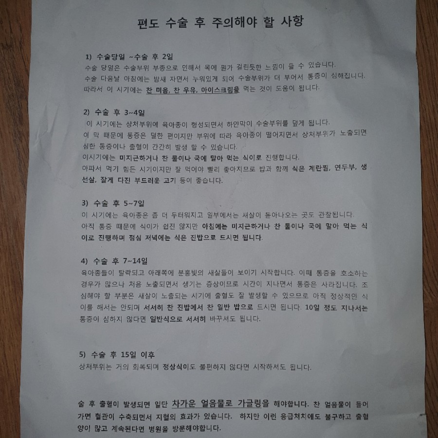 수술하고 10일 정도는 태어나서 가장 힘들어요.그게 아팠으니까 수술한 걸 많이 후회했지만 다시 견디다 보니까 시간이 가더라고요.지금은 수술하길 잘했다는 생각이 듭니다.수술하지 않았다면 평생 편도결석으로 인한 이물감, 냄새로 고생했을 테고 매년 오는 편도염으로 삶의 질이 많이 떨어졌을 텐데… 🙂