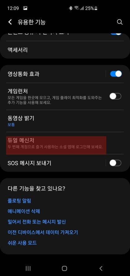 유용한 기능 페이지에서는 하단에 있는 듀얼 메신저 항목을 선택하여 들어갑니다.
