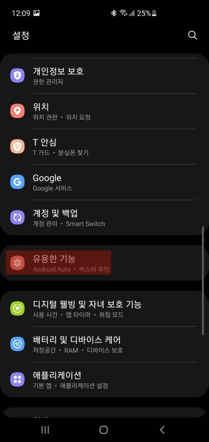 설정 앱으로 이동하면 스크롤을 내리고 유용한 기능 항목으로 들어가 줍니다.