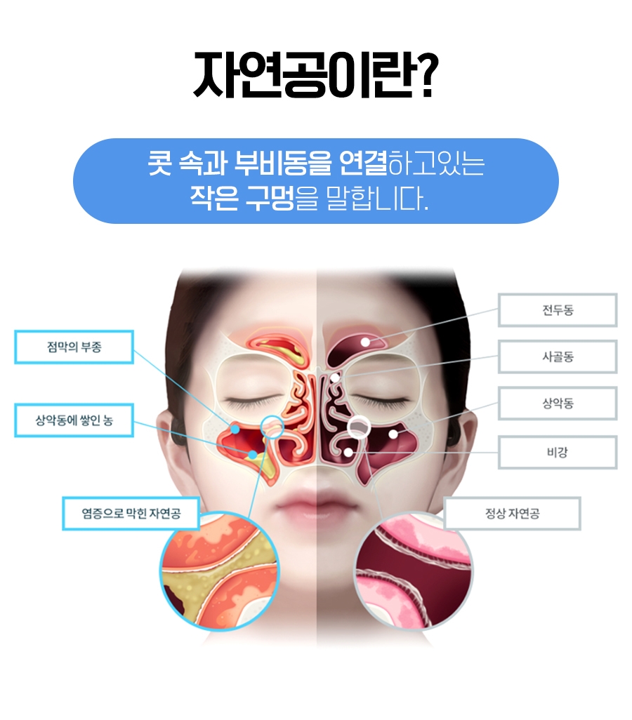 또한 점막에서 생성된 분비물을 자연공으로 밀어내고 배출하는 기능을 하는 공간이라고 광명축농증병원에서는 알려드렸습니다. 부비동은 4개의 공간으로 나뉘는데, 각 상악동, 전두동, 사곡동, 접형동으로 불렸습니다.