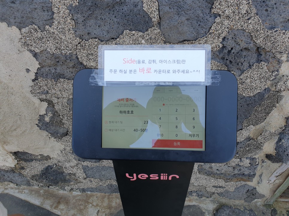 문 앞에 줄 서 있는 분들이 있는데 줄 서 있을 필요가 없어아이스크림을 주문하려면 그냥 들어가 주문하면 되고, 버거를 주문하려면 문 앞 기계에 전화번호를 입력해 기다리면 된다.