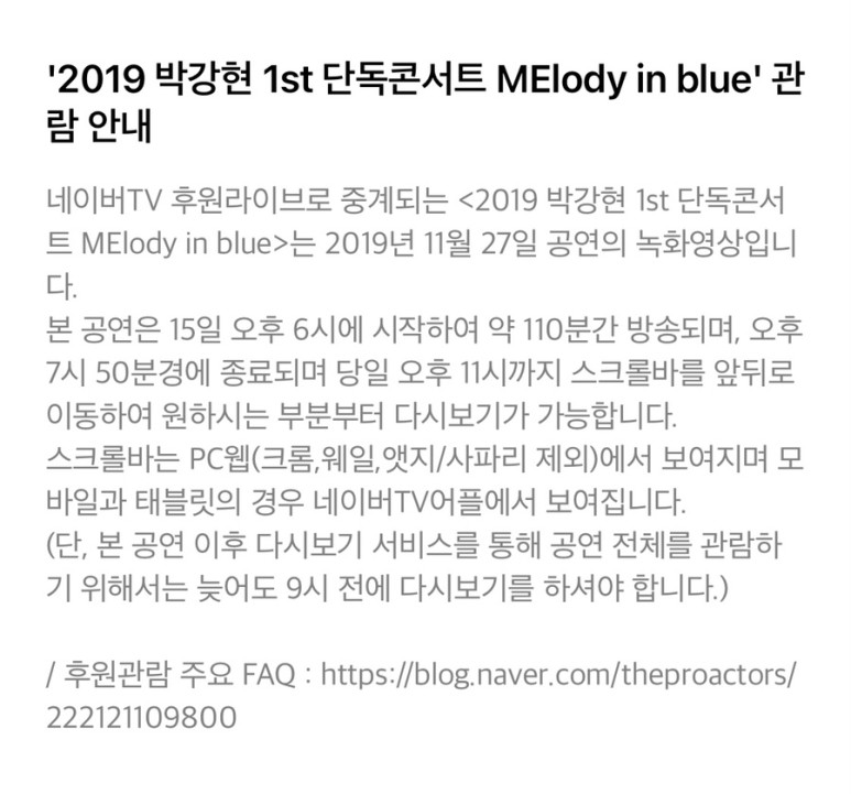 콘서트 ‘멜로디 in blu e’ 관람 후기! 11/15 박강현 배우님 첫 번째 단독