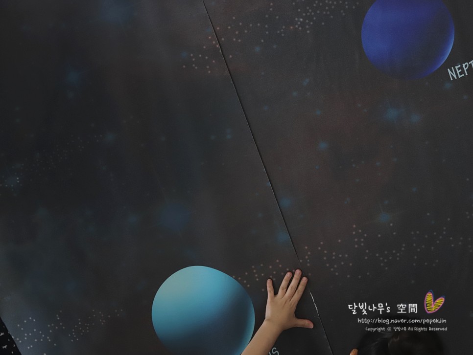 너무 예쁘고 멋지다면서 그림 벽지 속 쓰다듬어!행성별로 하나씩 터치하면서 우주 속에 너무 푹 빠졌어요.