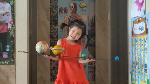 아이가 색을 칠하는 동안 행성을 보여주는 판과 글루건을 세팅해 놓는다.모빌에서 만들까 했는데, 달지도 않고… 그냥 폼보드를 재활용 했다.(지난번 행성 수업때 사용했던 폼보드~~)