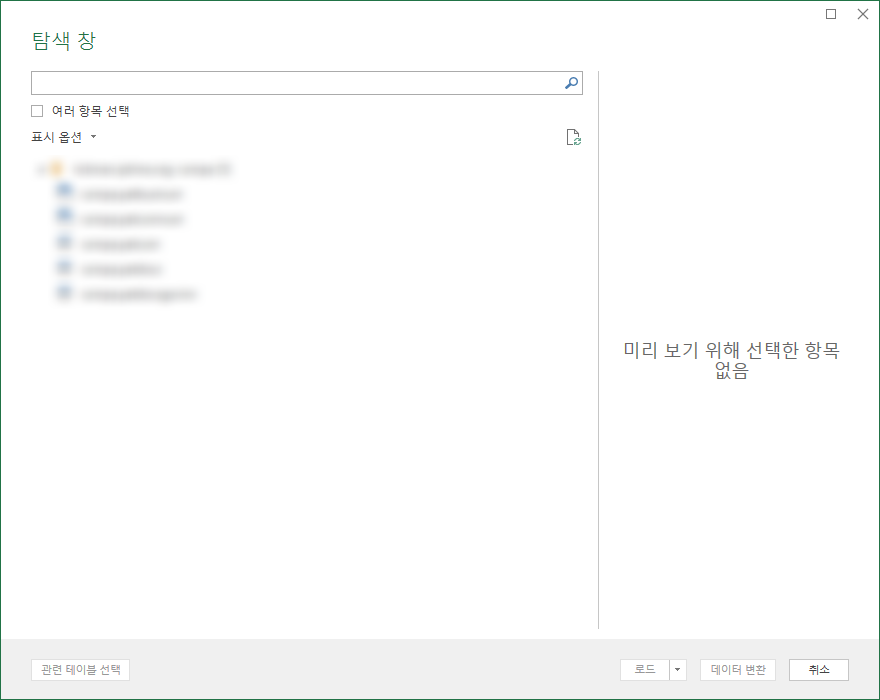 연결이 되면 아래와 같이 탐색 창이 뜨며 원하는 테이블을 선택한 후 파워퀄리와 동일하게 편집하면 쉽게 데이터베이스를 엑셀로 옮길 수 있습니다.