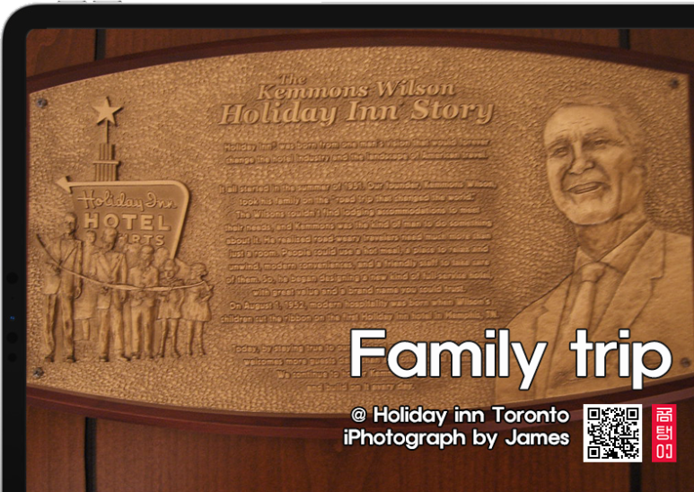홀리데이 인 호텔에 체크인하고 엘리베이터를 타고 방으로 올라가려다 홀리데이 인의 역사가 새겨진 동판과 마주한 아칸소(Arkansas)에서 태어난 케몬스 윌슨(Kemmons Wildon)은 워싱턴DC로 가족 여행을 갈 때 도중에 들른 호텔의 열악함에 염증을 느껴 스스로 호텔을 지어야 한다는 결심을 하게 되고, 그는 워싱턴DC로 가족 여행을 떠나던 중도에 들른 홀리데이 호텔이라는 Hidnay는 그에게 ‘홀리데이 호텔’라는 다짐을 하게 된다. (전 세계에 1,173개의 호텔이 있다)