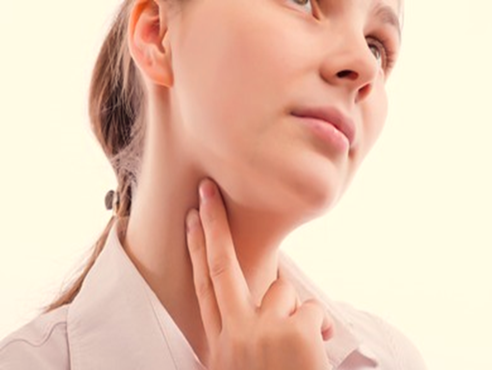 턱뼈 바로 아래, 목 옆의 혈관이 달리는 곳을 가볍게 누릅니다.