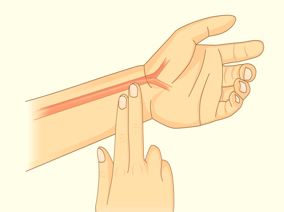 엄지손가락아래손목을혈관이움직일정도로검지와중지로가볍게눌러주거나