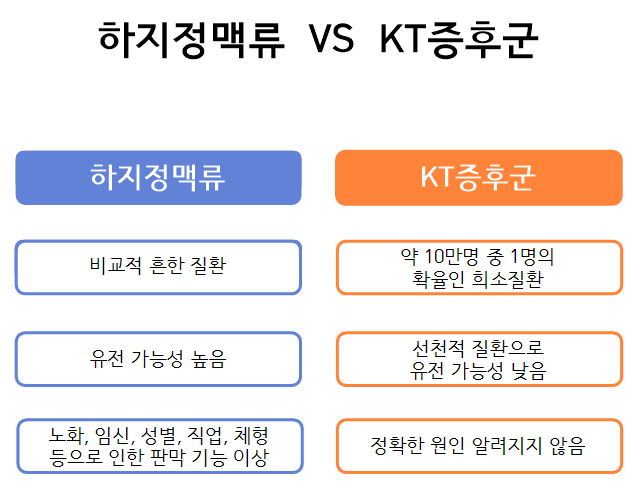 [하지정맥류와 KT증후군의 차이]