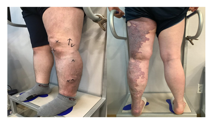 정맥류는 정맥의 판막이 손상되거나 결함이 있어 발생하는 질환인데 KT증후군 환자에게 매우 두드러지게 나타나 영향을 받은 사지에 광범위하게 나타납니다. 보통 하지에 가장 많이 발생하며 상지, 복부 및 골반에도 비정상적인 정맥이 발생할 수 있습니다. 심부정맥인 대퇴정맥이 허벅지 부위에 완전히 없는 경우도 있으므로 초음파 진단뿐만 아니라 전체적인 구조를 알기 위한 혈관컴퓨터촬영(CT)도 필요합니다. 또한 일반적으로 관찰되는 정맥류보다 크게 통증이 있으며 무엇보다 조직변성(색소침착 등)으로 인해 심한 합병증을 동반하는 특징을 가지고 있습니다.