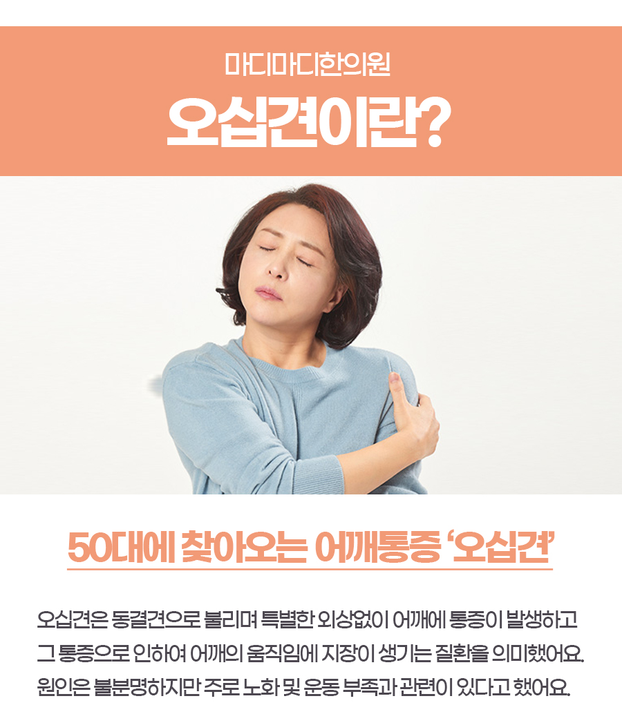 리에게 어떤 통증이 나타났을 때, 그 통증이 나타난 이유가 어떤 것이든 최대한 빨리 증상이 나타난 초기에 내원해서 관리를 시작해야 했는데요.중장년층에서 나타나기 쉬운 오십견과 같은 증상이 나타났을 때 고민하고 걱정이 되기도 했습니다.