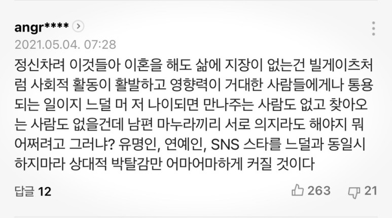 앞서 2019년에는 당시 세계 최고 부자였던 전자상거래업체 아마존의 창업자 겸 최고경영자(CEO) 제프 베이조스가 아내 매킨지와의 이혼을 발표해 논란을 빚은 바 있다.