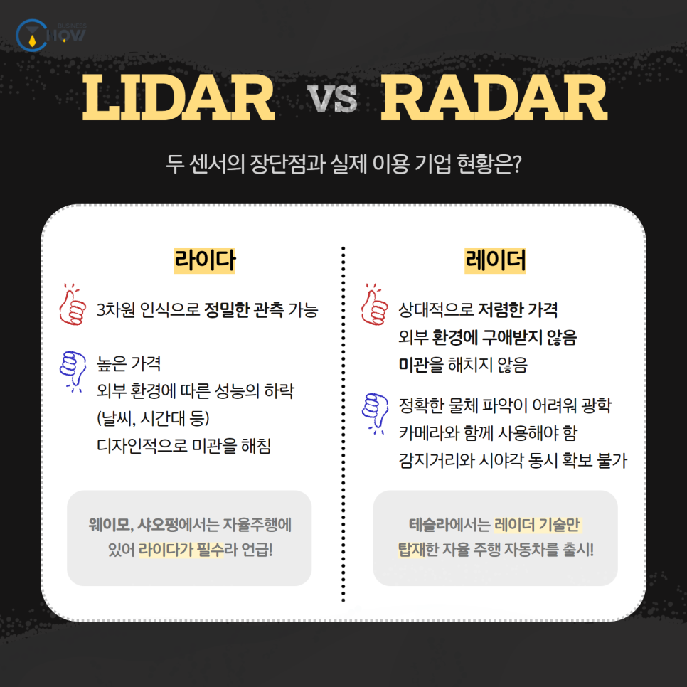 오늘 소개해드릴 주제는 자율주행의 꽃!이라고 할 수 있는 레이더(Radar)와 라이더(Lidar)입니다.