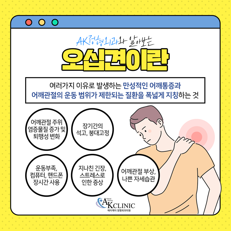 그 중에서도 오십견이 비교적 다양한 연령층에서 나타나고 있어 사회적 이슈가 되기도 했습니다.