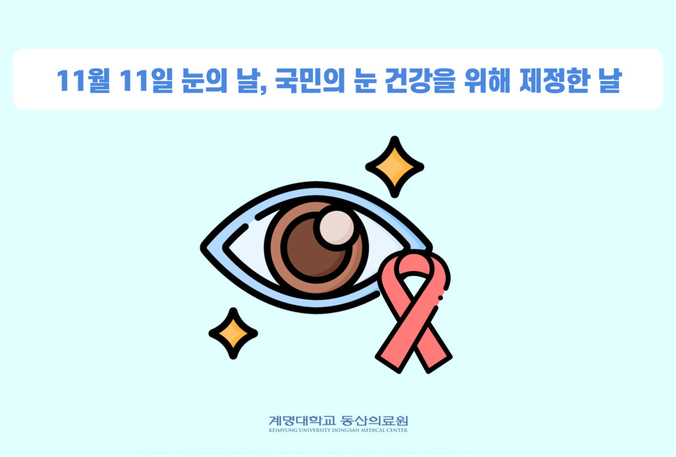 11월 11일은 ‘눈 오는 날’로 국민의 눈 건강을 위해 1956년 대한안과학회가 제정한 날입니다. 참고로 날짜 ’11’은 웃는 눈의 모양을 상징한다고 합니다.