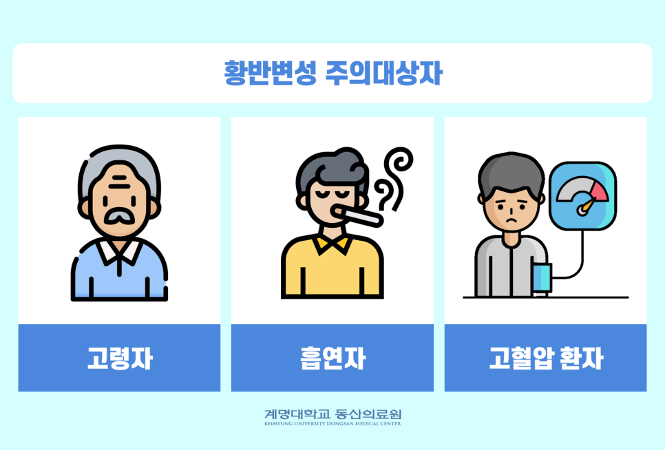 황반변성은 30~40대에서도 드물게 나타나지만 일반적으로 나이가 들수록 발병률이 증가합니다. 또한 흡연 시 유병률이 2.2배 증가하며 고혈압 환자로 황반변성 위험도가 45% 증가하므로 주의해야 합니다.