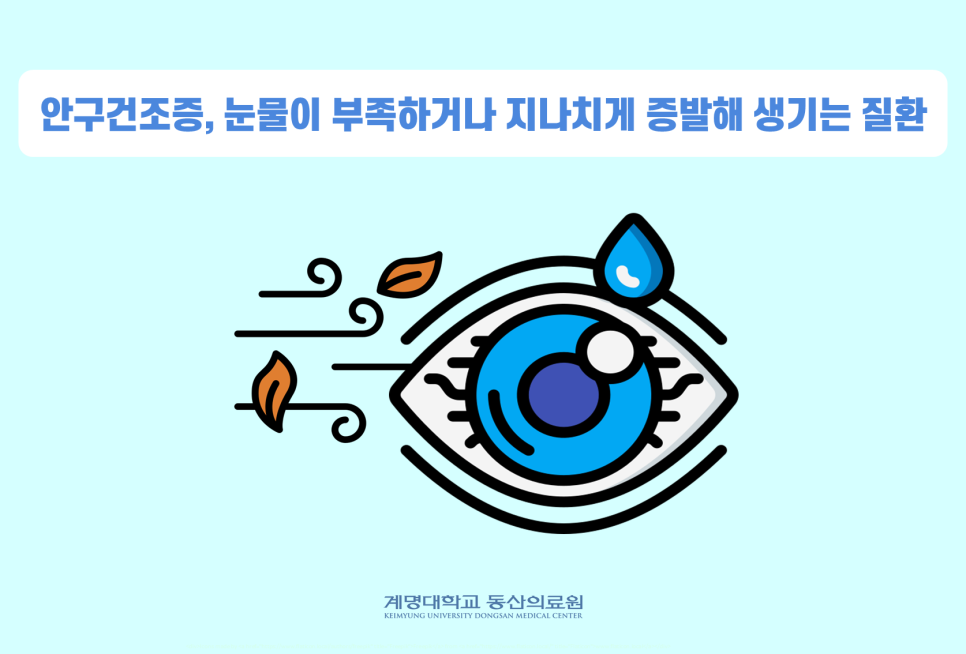 안구건조증은 눈물부족이나 눈물이 너무 증발하여 생기는 질환으로 공기의 질이 나빠지거나 가을과 같은 건조한 계절에 발생하기 쉽고 각종 스트레스, 독서, TV, 컴퓨터와 같이 눈을 피로하게 만드는 습관 등이 원인입니다.