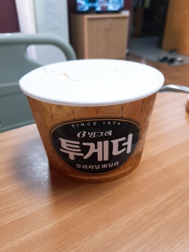 첫날에 나온 미음이랑 계란찜, 동치 미국 물 생각보다 미음에 간이 배서 먹을 수 있을 것 같았어전날 7시 이후 음식x물은 전날 11시 이후x22시간 정도 배가 고팠지만 배고프지 않은 미음을 여러 번 먹고 너무 개의치 않아 남편에게 투게더를 사오라고 한다.