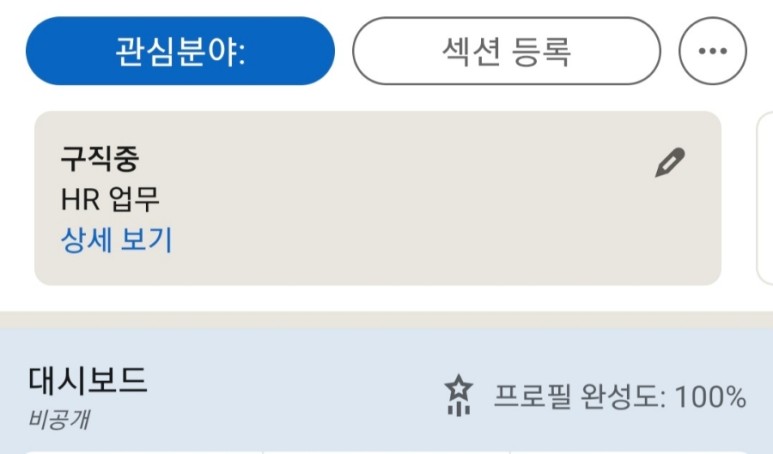 다만 링크드인은 등록회사 기반으로 운영되기 때문에 같은 회사의 리크루터(채용담당자)는 나의 구직 적극 지원 현황은 알 수 없지만 궁금하다면 아는 것을 참고하여 만약 누군가가 물었을 경우 말할 적당히 생각해둔다.완벽하게 완성됐고 이제 적당한 포지션을 기다려보자.며칠이 지났다. 그동안 링크딘에 수시로 접속해 인스타그램 팔로우처럼 1촌을 늘려왔다. 필수는 아니지만 활동력 있는 구직자처럼 폼을 잡아봤다.