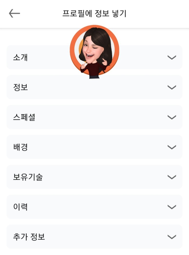 프로필 하단 대시보드를 통해 프로필 완성도 100%를 확인했지만 혹시 빠진 부분은 없는지 배경이나 보유 기술이 되지 않아 봉사활동 분야까지 꼼꼼히 체크하고 보완 보완을 거친다.