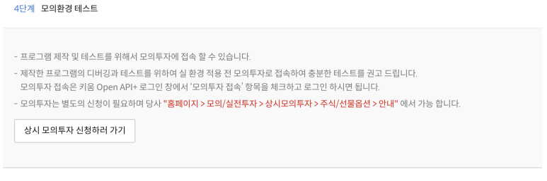 자동매매 프로그램을 사용하기 전에 테스트를 해보고 싶다면 모의투자를 신청하고 모의투자계좌로 테스트한 후 실제 계좌로 운영해 보는 것이 좋습니다.