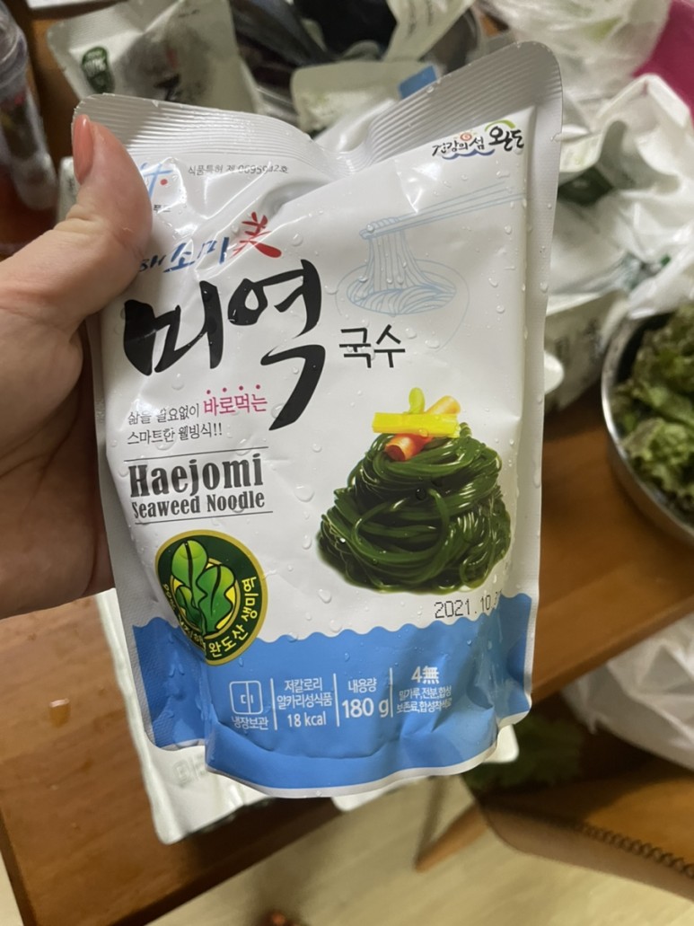 그래서 다음날 양심이 가책을 느꼈습니다.그래서 다음날 정말! 진심 다이어트식으로 먹기로 했어요!! 이날은 미역면을 먹어볼게요. 오늘은 건강식으로 콩국수를 만들어 먹기로 했습니다.
