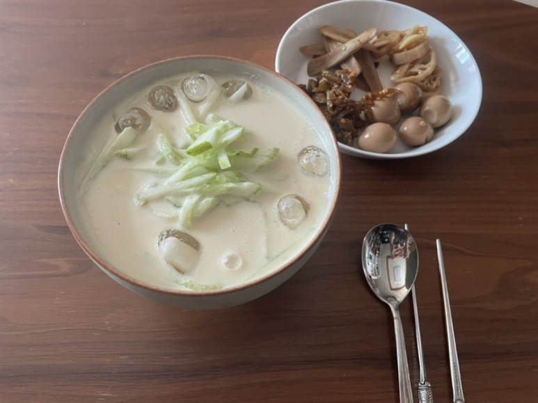 간단한 반찬을 곁들이면 콩국물에 소금을 넣지 않아도 맛이 딱 맞았어요.면 자체에 짠맛도 없으니 안심하세요.이것이야말로 웰빙식입니다