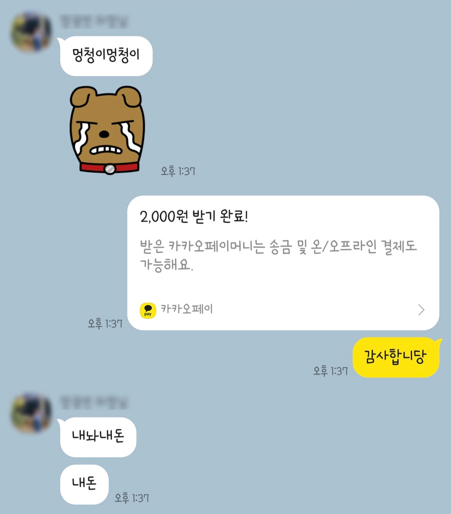 차장님께 제가 2천원 드려야 하는데 갑자기 저에게 2천원을 주신(?)