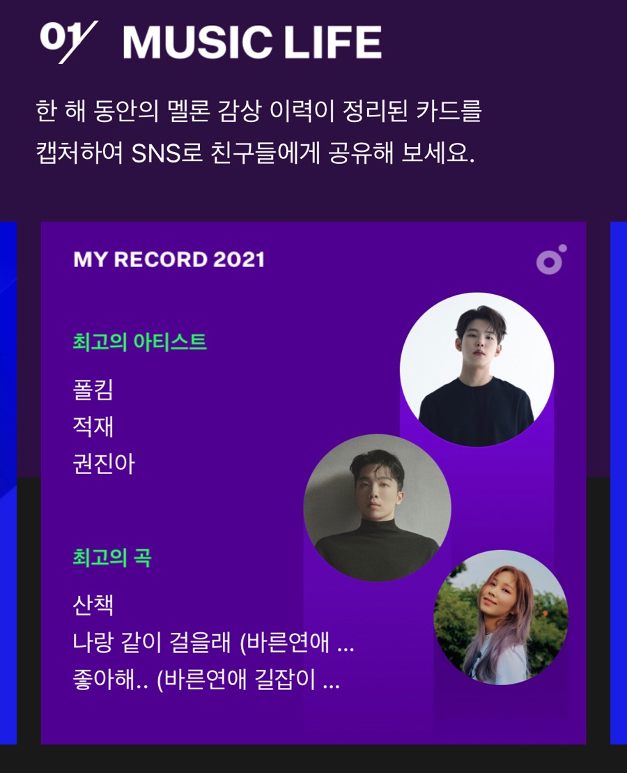 내가 매일 돌아가면서 듣는 플레이리스트 가수 폴킴, 권진아, 적재가 나왔다.내 취향을 봐버려~
