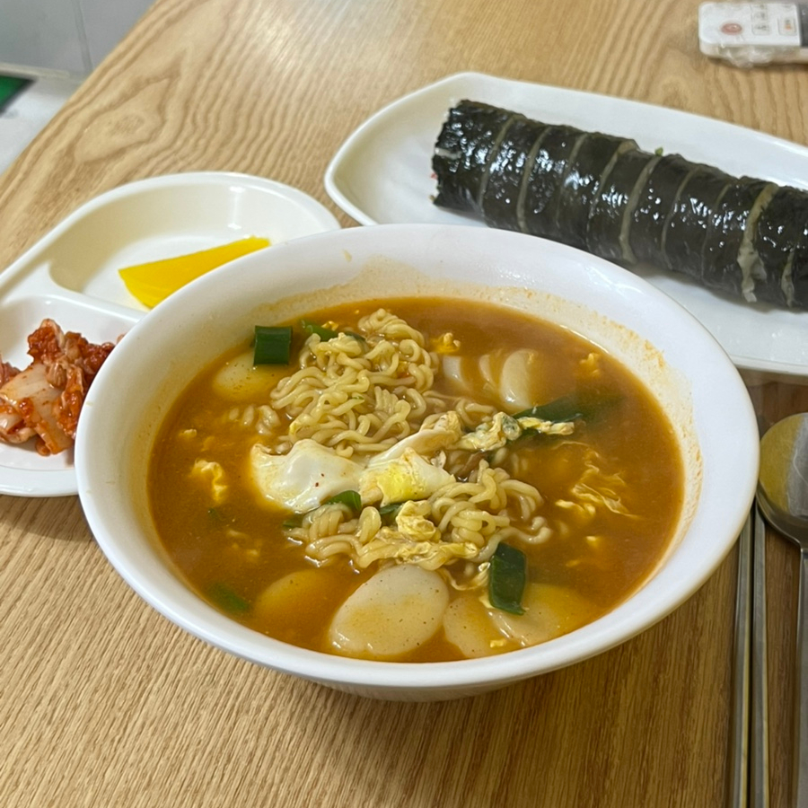 일이 많아서 열심히 일하다가 8시가 넘어서 배가 너무 고파서 달려갔다.떡라면에 고추김밥을 먹었더니 배부르다~