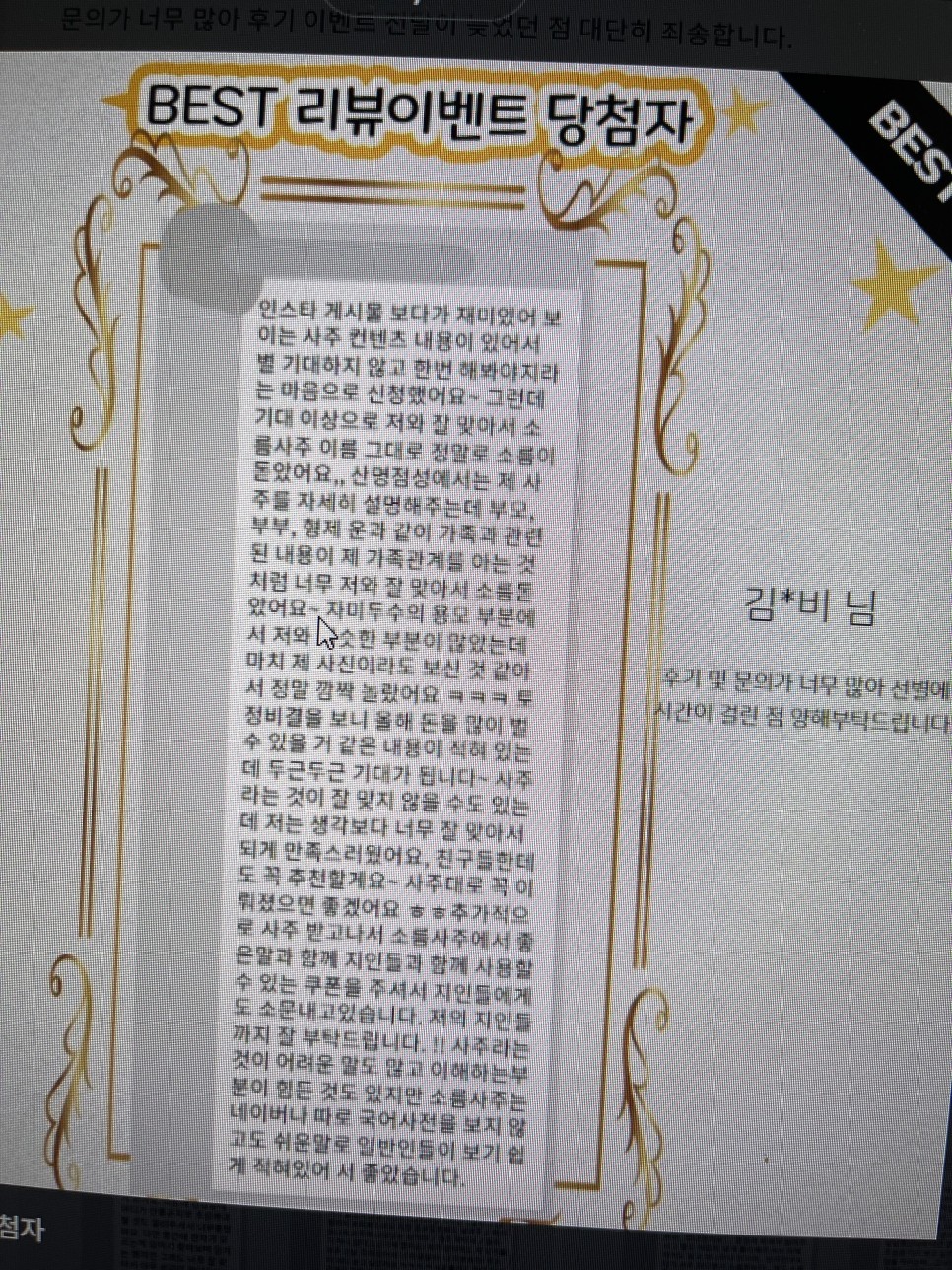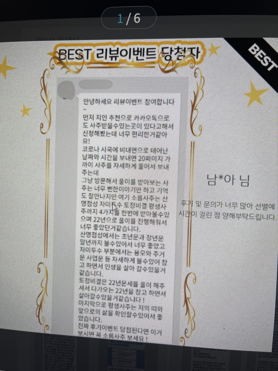 제가 개인정보를 오픈하는 건 아닌 줄 알고 이렇게 모자이크 투성이였는데 여러 장에 걸친 글에 인생사가 다 풀리는 느낌이라 신기했습니다.저는 여기서 보시는 분들은 기본적으로 사주와 토정비결은 꼭 봐주셨으면 좋겠습니다.