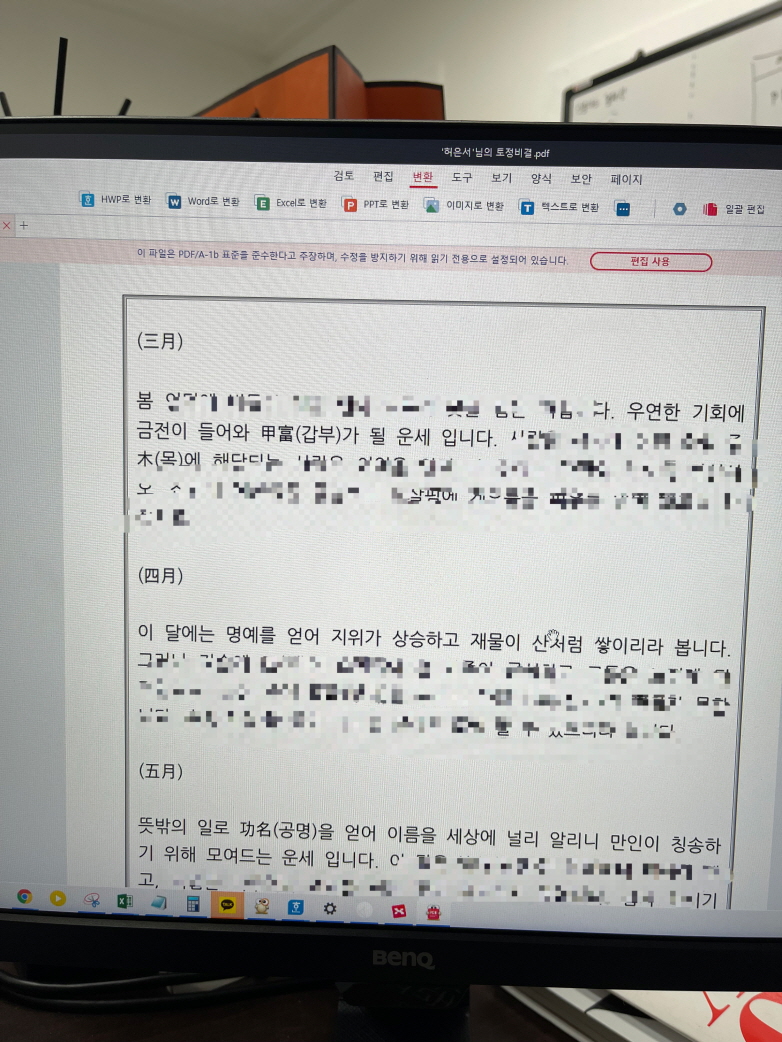 이렇게 보내주면 72시간 안에 파일을 받을 수 있는데 깔끔하게 정리된 PDF를 보내줘서 인쇄해보기도 편했습니다.특히 저는 개운치 않은 마음에 토정비결까지 같이 신청했는데 월별로 정리해놓은 데다 애매하게 쓰지 않고 깔끔하게 지적해주니 불안한 마음이 사라졌어요.