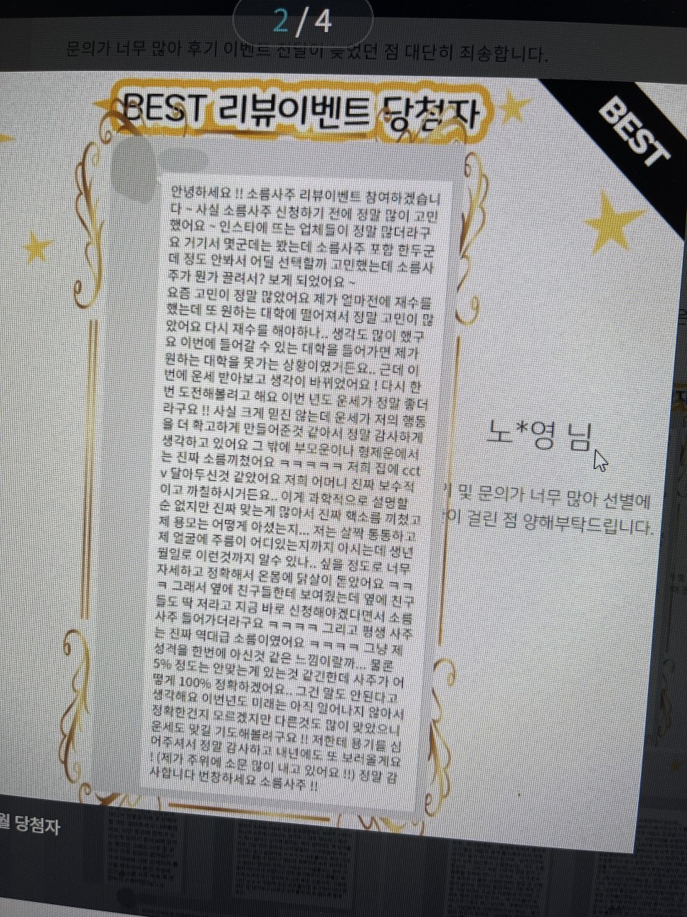 저는 리뷰 행사에도 열심히 참여하고 있지만 이렇게 인기가 많고 사실적인 경험담이 많은 이유는 백화점 상품권이 걸려있는 행사 때문이 아닐까 생각합니다.실제로 이걸로 얻는 분들도 많은 것 같아서 언젠가는 제 차례도 돌아오지 않을까 싶어요.